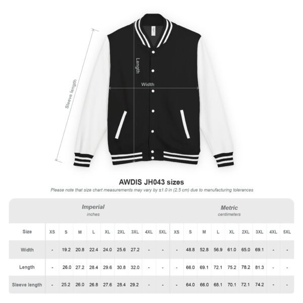– Available in 12 color combinations with contrasting sleeves and striped cuffs