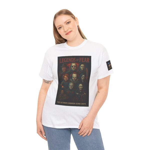Bring the nightmare to life with this “Legends of Fear” horror icon tee — a bold, blood-red and midnight-blue illustration that unites cinema’s most terrifying villains in one legendary lineup. Featuring Freddy Krueger, Jason Voorhees, Michael Myers, Chucky, Pennywise, Ghostface, Pinhead, Leatherface, and Billy the Puppet, this shirt is pure nightmare fuel for true horror fans.