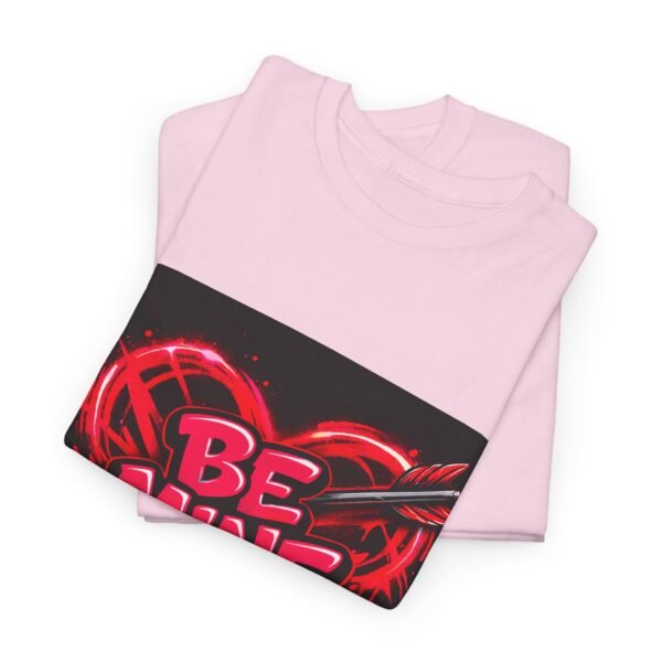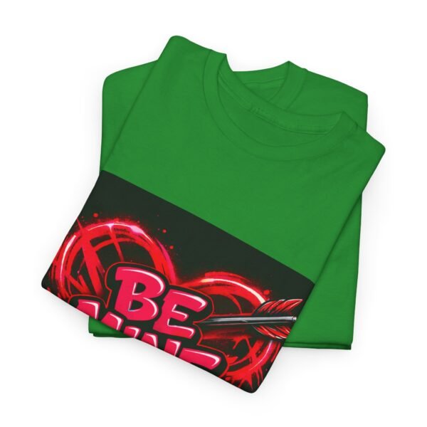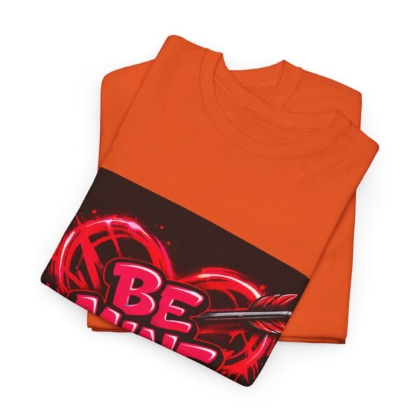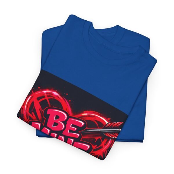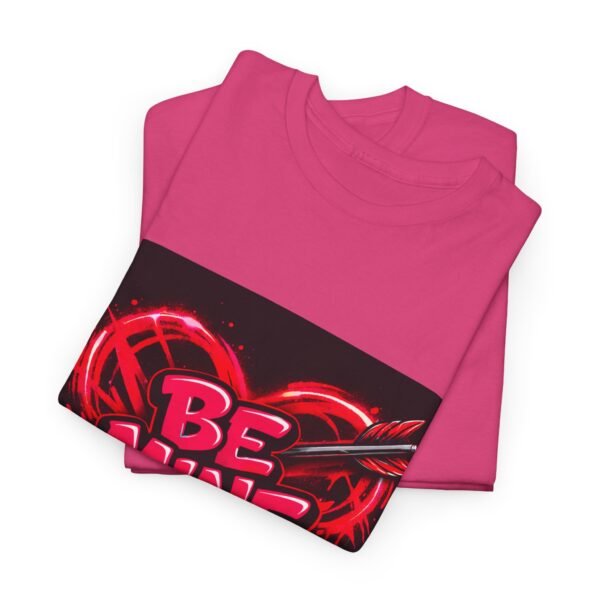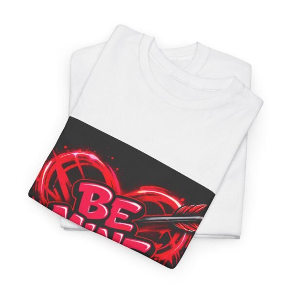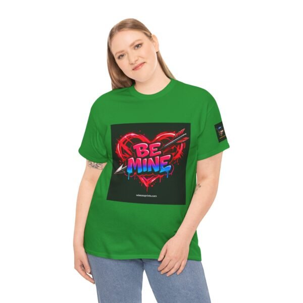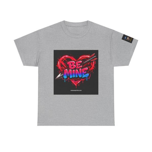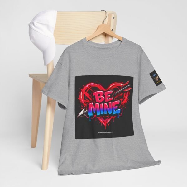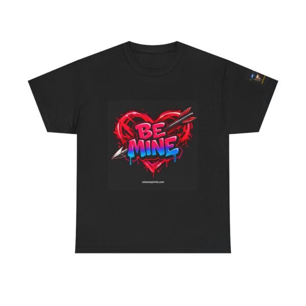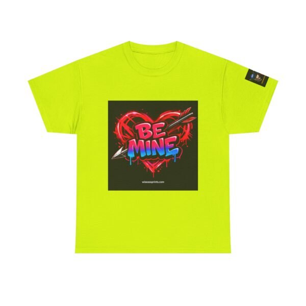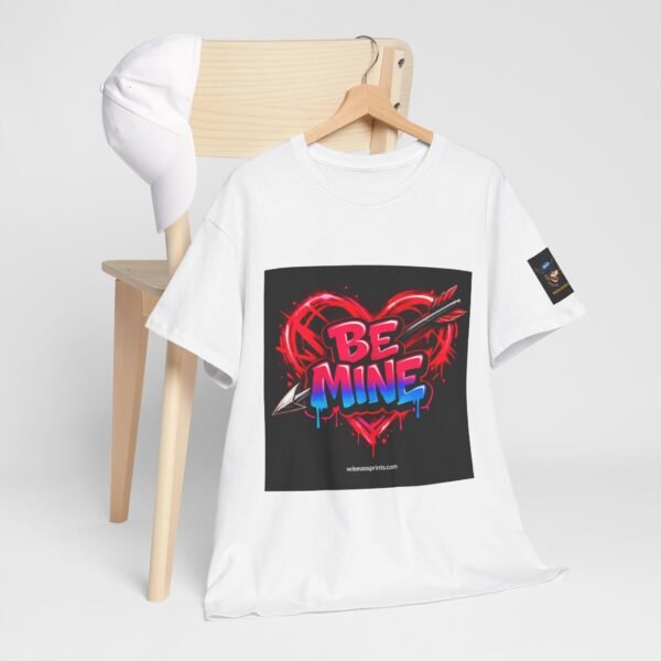 This tee feels like a late-night mixtape of neon and heartbeats. A bold, graffiti-style heart blazes across the chest, dripping electric reds and pinks into a vivid “BE MINE” that reads like a daring note left on a dashboard. The square art sits clean on a crisp white canvas, while a small branded patch on the sleeve adds a subtle, streetwise detail. Wear it to loud shows, rooftop hangs, or when you want an edge in a small-town café — it’s casual, confident, and built to move with you.