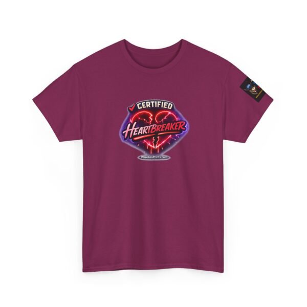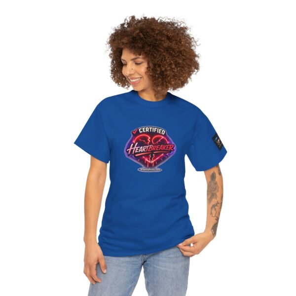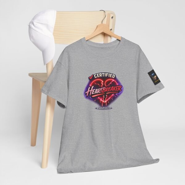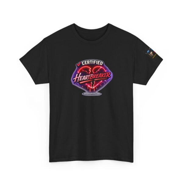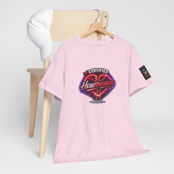 A soft, classic cotton tee that brings playful neon energy to everyday wear. The front features a vibrant retro sign-style graphic with a glowing heart and the word “Heartbreaker,” while a small printed label detail sits on the sleeve for a finished, streetwise touch. Lightweight yet durable, this shirt settles into a relaxed silhouette that layers easily under jackets or stands alone on warm days. It’s made and printed with attention to lasting color and comfort, so the neon tones stay vivid and the fabric holds its shape through regular wear.