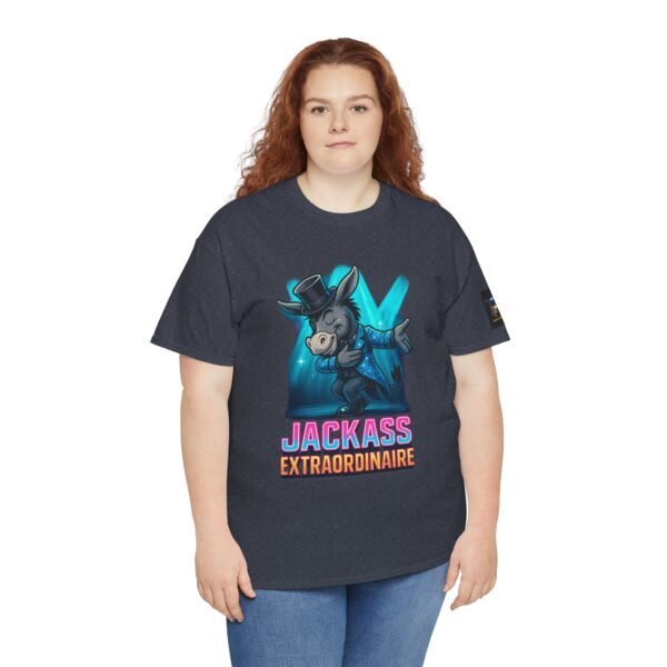 Step aside, amateurs — Donnie the Donk has entered the spotlight! The “Jackass Extraordinaire” tee from Wise Ass Prints celebrates the art of being confidently ridiculous. Featuring Donnie bowing in style, rocking a glittering blue tux, top hat, and all the charm of a showbiz legend under bright stage lights — this design screams neon charisma and pure Wise Ass energy.