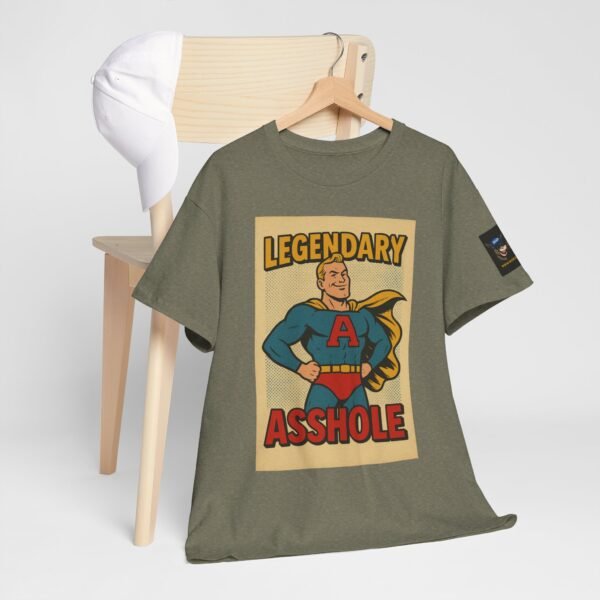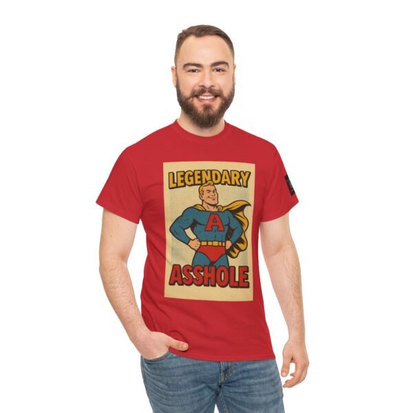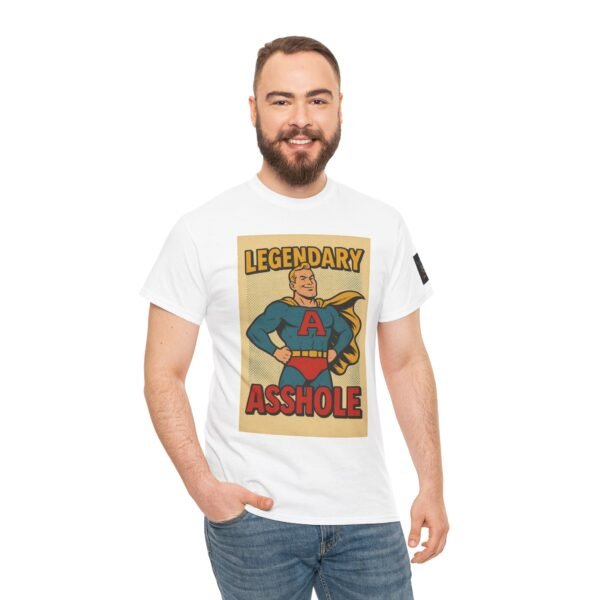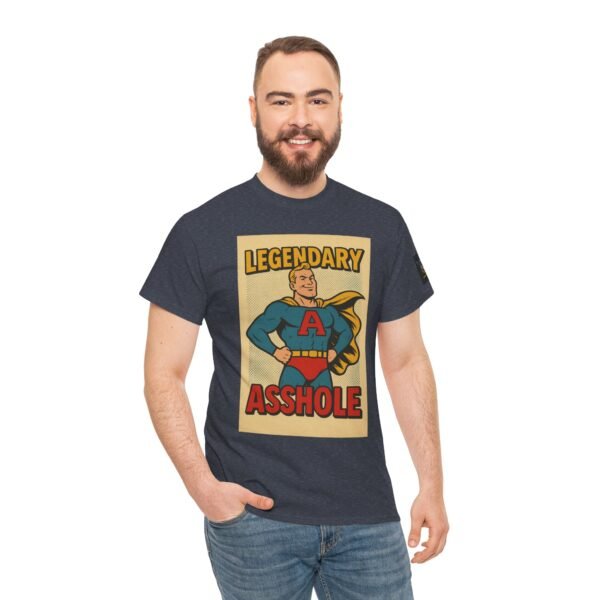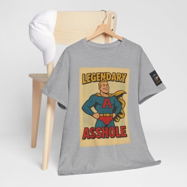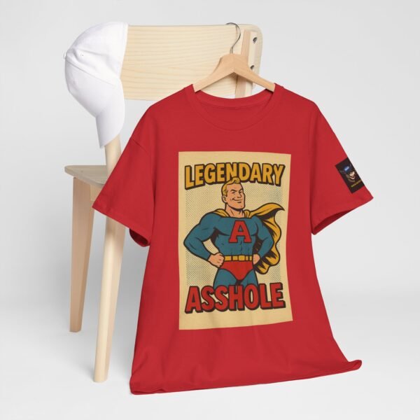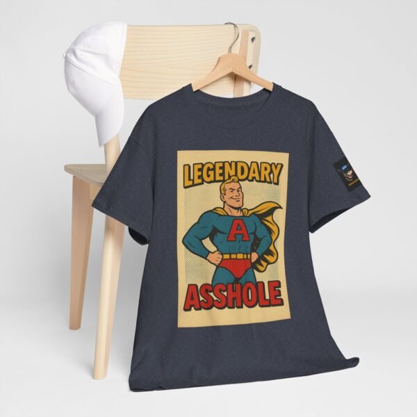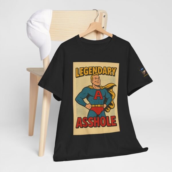 Every hero has a symbol, but this one’s rocking a giant “A” – and it doesn’t stand for “awesome.” The Legendary Asshole t-shirt from Wise Ass Prints is a bold, retro comic-inspired design featuring a smug superhero in classic cape and tights, striking a proud pose that matches the sarcastic slogan.