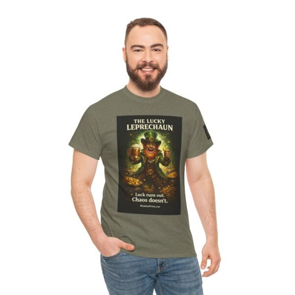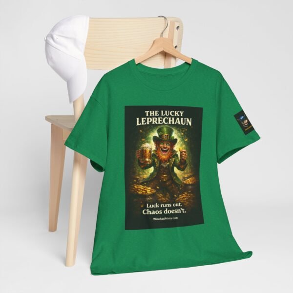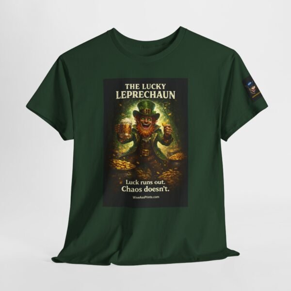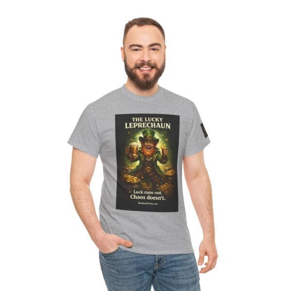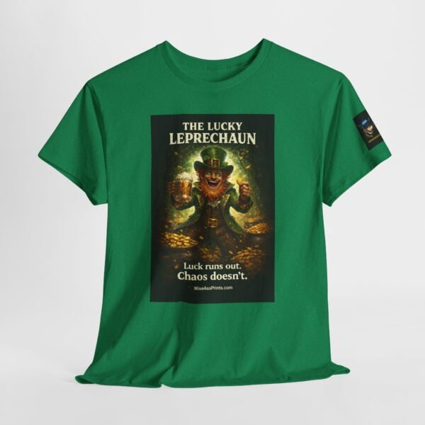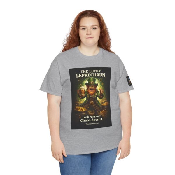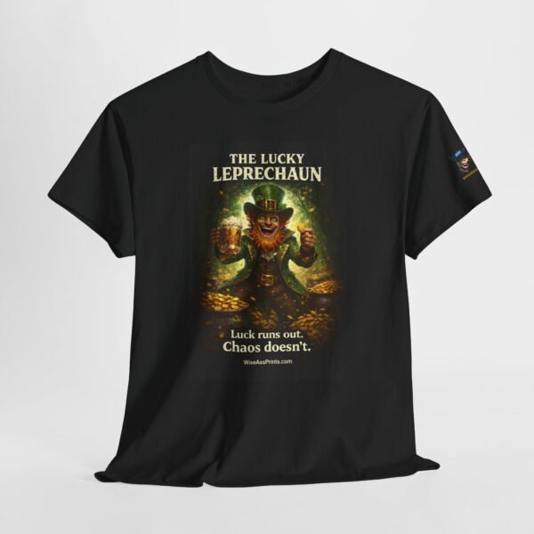 This classic cotton tee wears like a trusted companion for anyone who loves playful, slightly wicked charm. The front features a vintage-inspired leprechaun illustration — gold coins, mischief-lit eyes, and rich, moody color that reads like a poster pulled from an old curiosity cabinet. Short, evocative text beneath the image teases a grin: an attitude piece that works alone or layered under jackets. The crew neck and relaxed cut keep the focus on the art while providing all-day comfort. Subtle sleeve and inner-neck prints add collectible details that feel thoughtful rather than loud. Durable, ethically produced cotton and clean finishing give this shirt longevity you can feel in the hand and wear on repeat.