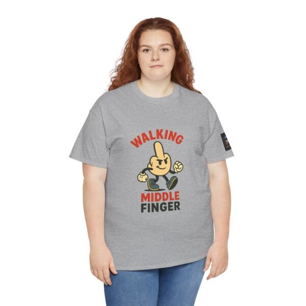Turn heads with this bold Walking Middle Finger T-Shirt. Featuring a retro cartoon design of a strutting middle finger character, this tee delivers humor, attitude, and a playful rebellious edge. Perfect for anyone with a sarcastic streak or those who like their streetwear with personality. Soft, comfortable, and built for laughs — this shirt says what you’re thinking without saying a word.